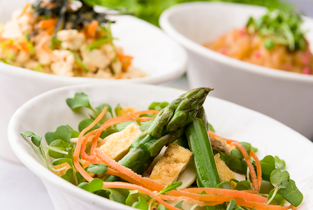 具体的な食材について話すと、基本は玄米。なんてったって蒔けば芽を出す生きている米なわけで。エネルギー溢れる食材とも言えるでしょう。でも、体質的に玄米が入らない人もいます。そういう場合は無理せず、白米に雑穀を混ぜたり分搗き米にしたり、と工夫してみるといいですね。リゾットやピラフ、チャーハンなんかにすると食べやすいです。そして、野菜、海藻、豆類などを毎日のメニューに取り入れます。調味料は、伝統製法で作られたしょうゆ、みそ、自然塩、梅酢、菜種油、ごま油等をメインで使用。キッチンいっぱいに調味料を並べる必要はないんですよ。